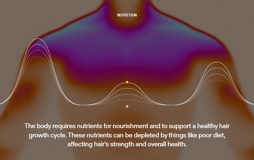 Our proprietary blend pinpoints internal causes of hair thinning and shedding to promote ahealthy hair growth cycle—because hair and health grow together.
